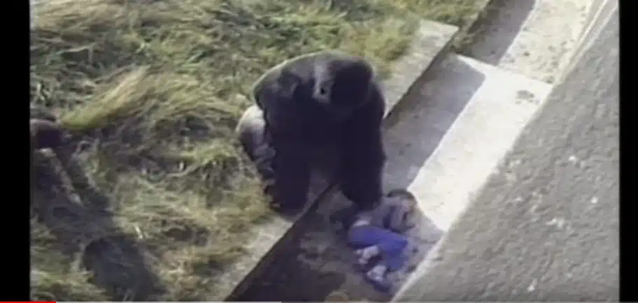 Chłopiec w wyniku upadku stracił przytomność, a ludzie zamarli w przerażeniu, kiedy 250-kilogramowy samiec Jumbo zbliżał się zaciekawiony do Levana. Okazało się, że goryl nie miał wrogich zamiarów, a chciał po prostu popilnować chłopca, aby żaden z jego towarzyszy nie zrobił mu krzywdy! W pewnym momencie widzimy jak Jumbo głaszcze 5-latka i chroni go przed stadem