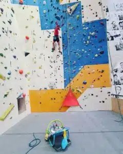 Tym razem 39-letnia Justyna Kowalczyk wybrała się z synkiem na ściankę wspinaczkową. Sportsmenka wpinała się zatem po ściance, a mały Hugo siedział sobie w leżaczku dla dzieci.